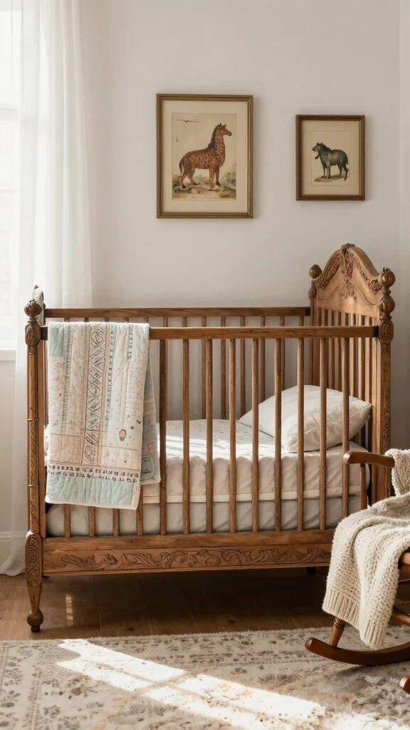 This blend of style and practicality makes a vintage crib a standout choice, enriching your nursery’s overall charm.