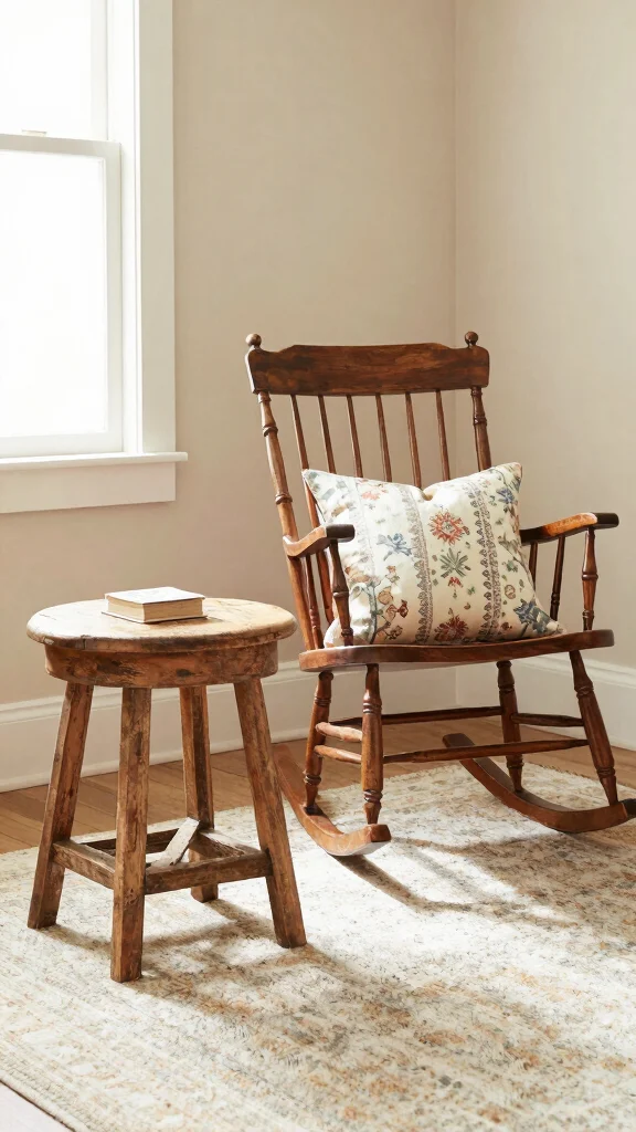 Accent furniture pieces can significantly enhance the vintage charm of your nursery while providing essential functionality. Seek rustic items like weathered wooden side tables, rocking chairs, or vintage trunks that can serve as coffee tables or extra storage. Their rustic nature adds warmth and history to the room.