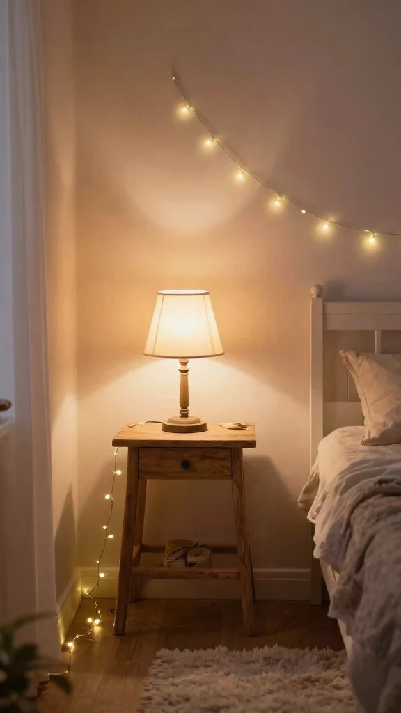 – Layer your lighting with bedside lamps or fairy lights for added charm.