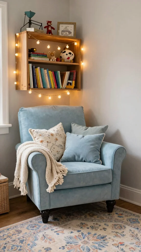 Designate a small corner with soft seating and books to encourage a love for reading from an early age.