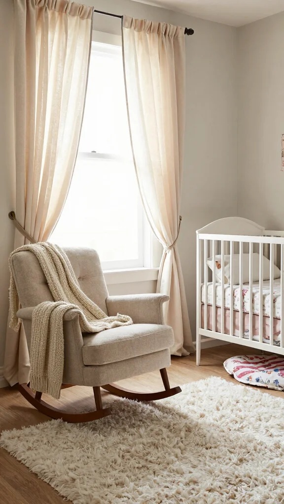 Draped curtains soften incoming light, while plush rugs provide a comfortable play area. When selecting bedding, opt for soft, breathable fabrics that are gentle against your baby’s skin.