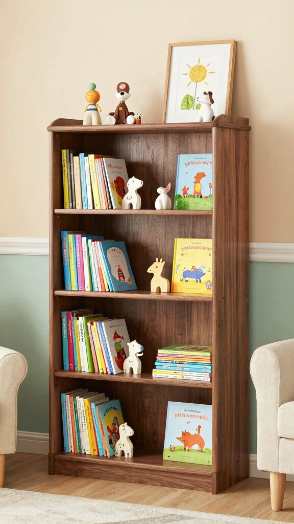 A classic bookshelf not only enhances the cozy vibe but also encourages a passion for reading in your little one.