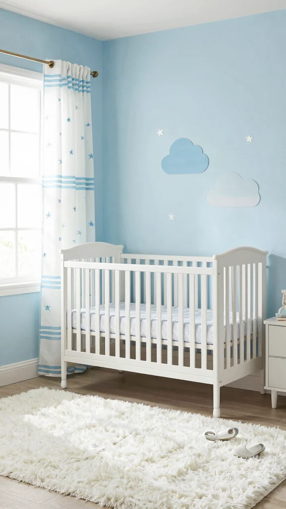 A soft blue and crisp white palette establishes a serene and tranquil environment that feels like a peaceful sky. This gentle color combination promotes a calming atmosphere, perfect for a nursery space where your little one can relax and sleep. By incorporating various shades of blue, such as powder and navy, you can create depth while maintaining an airy feel. Consider using this palette in wall paints, furniture choices, and textiles throughout the room.
