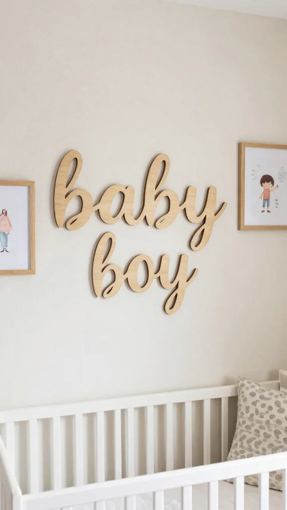 To implement this idea, look for budget-friendly wooden letters or soft materials to spell out your baby boy’s name. Consider personalized artwork that features his name or initials for a sentimental touch. This approach resonates with the trend of creating meaningful spaces that reflect individuality.