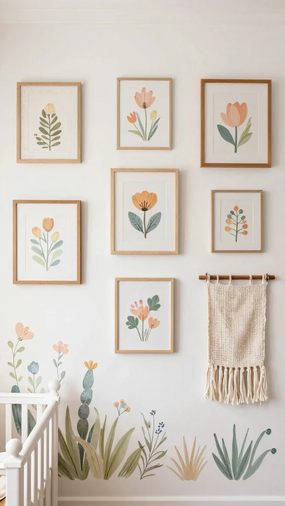 To implement this idea, look for budget-friendly murals or decals that tell a story. Mixing framed art pieces or prints can also enhance the visual appeal while complementing the nursery’s color palette. This approach aligns with the trend of creating engaging spaces that promote creativity.