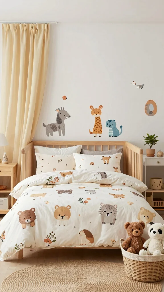 – Choose bedding and curtains featuring soft animal prints for a cheerful vibe.