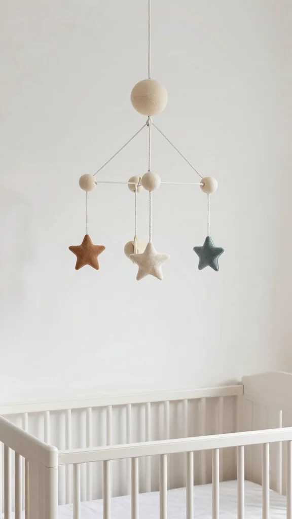 A beautifully crafted mobile can serve as a stunning focal point above the crib, creating visual interest without occupying floor space. Look for designs made from natural materials or simple shapes to keep the look minimalist.Key points for selecting a mobile: