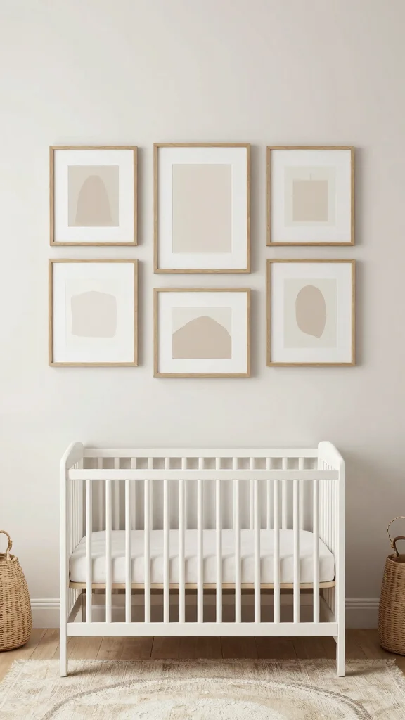 Art breathes life into a nursery, but in smaller spaces, simplicity reigns supreme. A minimalist art display featuring a few carefully chosen pieces can add character while keeping the overall aesthetic light.Ideas for a minimalist art display include: