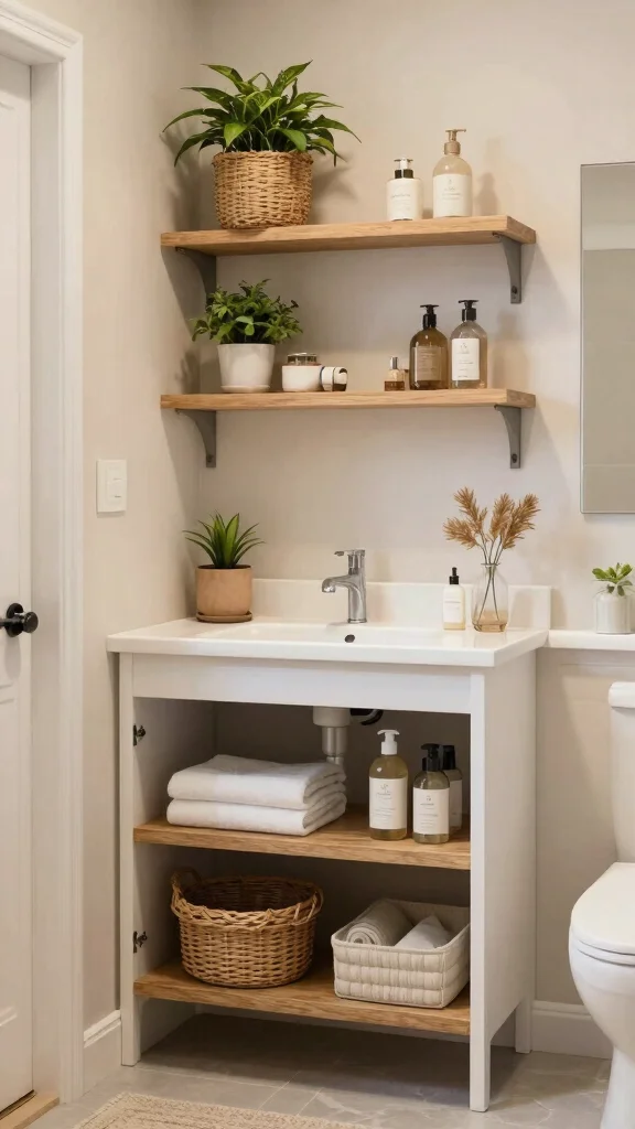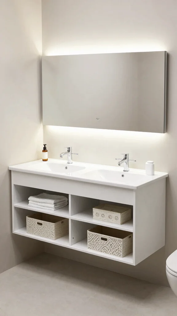 An open-shelf vanity is a stylish solution that celebrates simplicity and accessibility. This design allows you to showcase your favorite bathroom essentials while keeping everything organized. Opt for a mix of decorative boxes and baskets to create a personalized yet clean look. Open-shelf vanities work best in larger spaces, allowing you to play with decor and accessories.