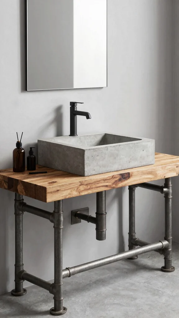 For a striking statement, consider an industrial pipe vanity that showcases raw materials like metal pipes and reclaimed wood. This design is ideal for urban lofts or for those who appreciate a modern, minimalist aesthetic. Pair it with a concrete or stone sink to enhance the industrial vibe, creating a unique and sturdy feature in your bathroom.