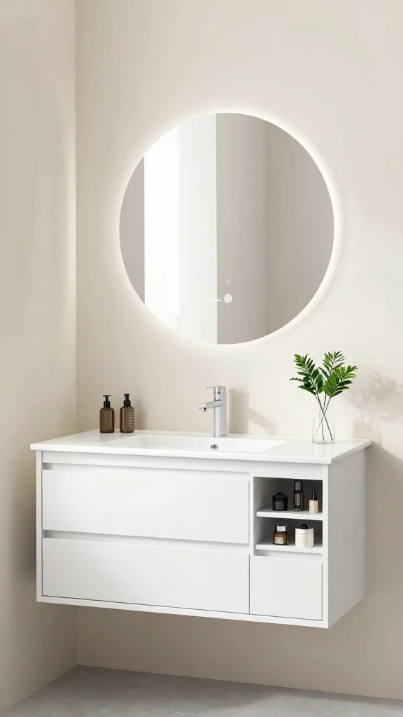 To implement this design, think about installing a floating vanity. This will not only create the illusion of more space but also make cleaning a breeze. Incorporating drawer dividers can keep your makeup essentials organized and within easy reach, enhancing your morning routine. Light, airy colors can amplify the brightness in your bathroom, connecting you to broader design trends focused on tranquility.
