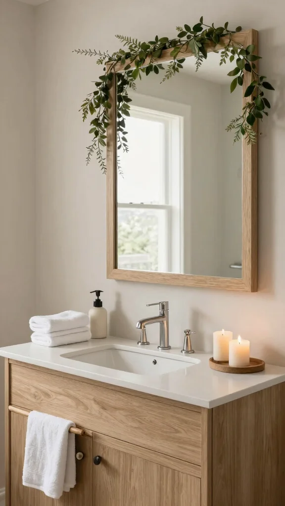 Incorporate natural materials like wood and stone to enhance the spa experience, and use a large mirror framed with organic elements for added charm. Complete the look with plush towels and candles that contribute to a soothing ambiance. Consider using bamboo trays for organizing your makeup, adding an earthy touch to your routine.