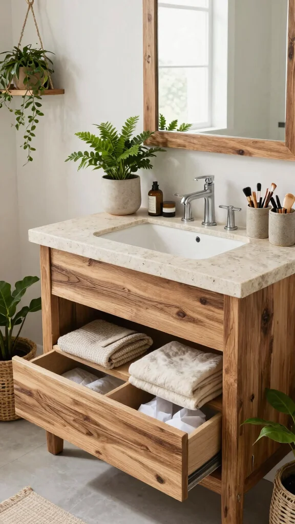 – Choose reclaimed wood for a sustainable vanity.