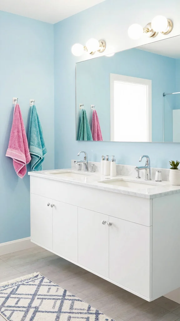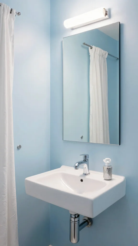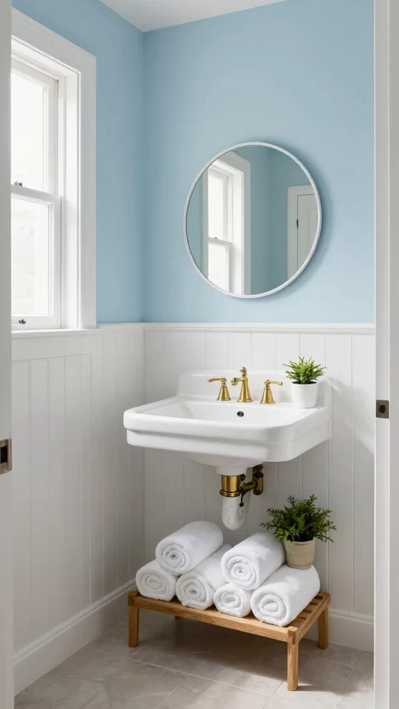 Soft powder blue walls create a calming atmosphere that feels both spacious and airy. This gentle hue works wonders in small bathrooms, maximizing the perception of space and tranquility. When paired with white fixtures and natural wood accents, it adds a touch of warmth and comfort, creating a welcoming sanctuary in your home.