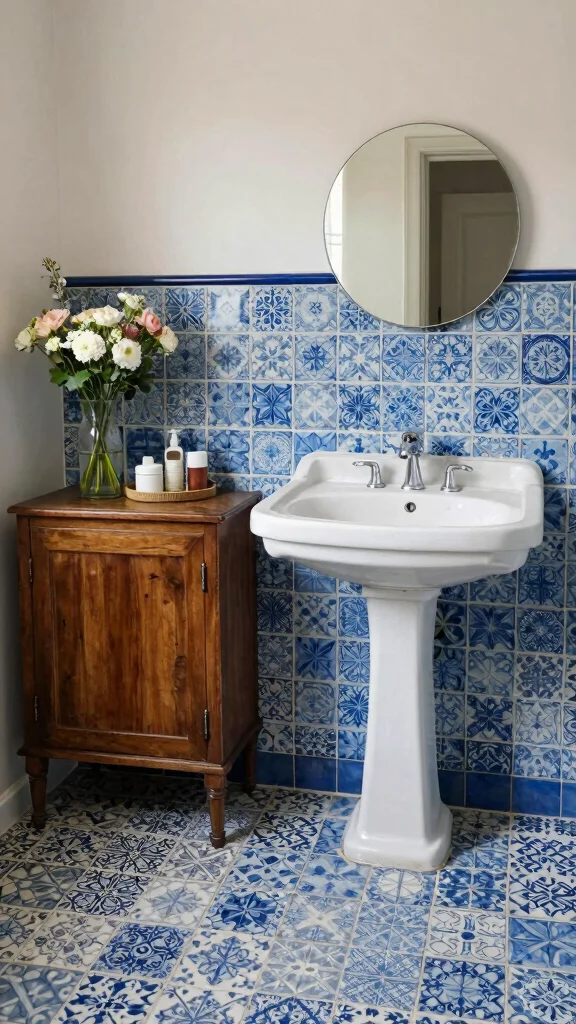 Tiles can significantly transform your powder room’s aesthetic. Vintage tiles featuring beautiful blue patterns introduce personality and charm, making them a perfect choice for both floors and backsplash areas. The intricate designs can add a unique touch to your space, ensuring it stands out.