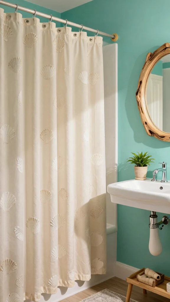 To achieve this look, use ocean-themed decor like seashells and driftwood accents to enhance the beachy feel. A whimsical shower curtain featuring coastal designs can elevate the theme even further. Adding a pop of coral introduces a vibrant contrast that catches the eye.