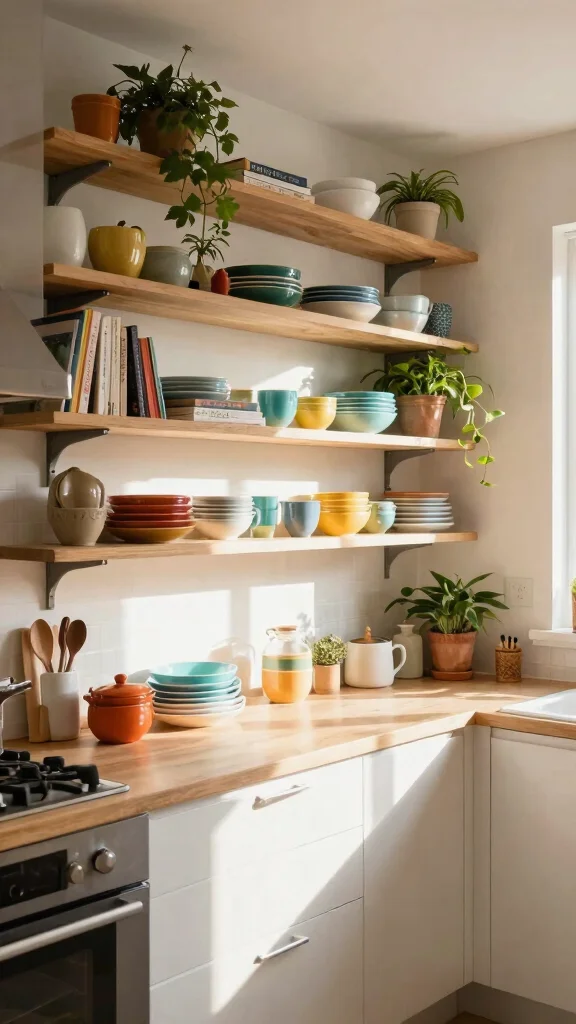 Open shelving is a trendy solution that adds both storage and style to your small kitchen!