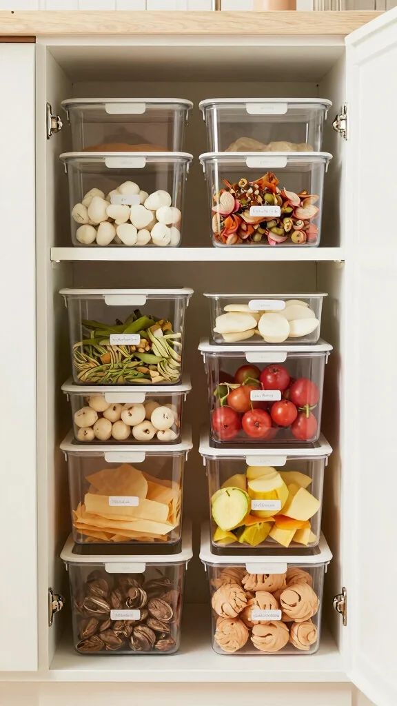 Maximize your cabinet space with stackable storage bins! These versatile containers come in various sizes, allowing for efficient vertical storage that keeps your kitchen organized. Use them for dry goods, snacks, or even dinnerware to maintain a tidy and accessible space.