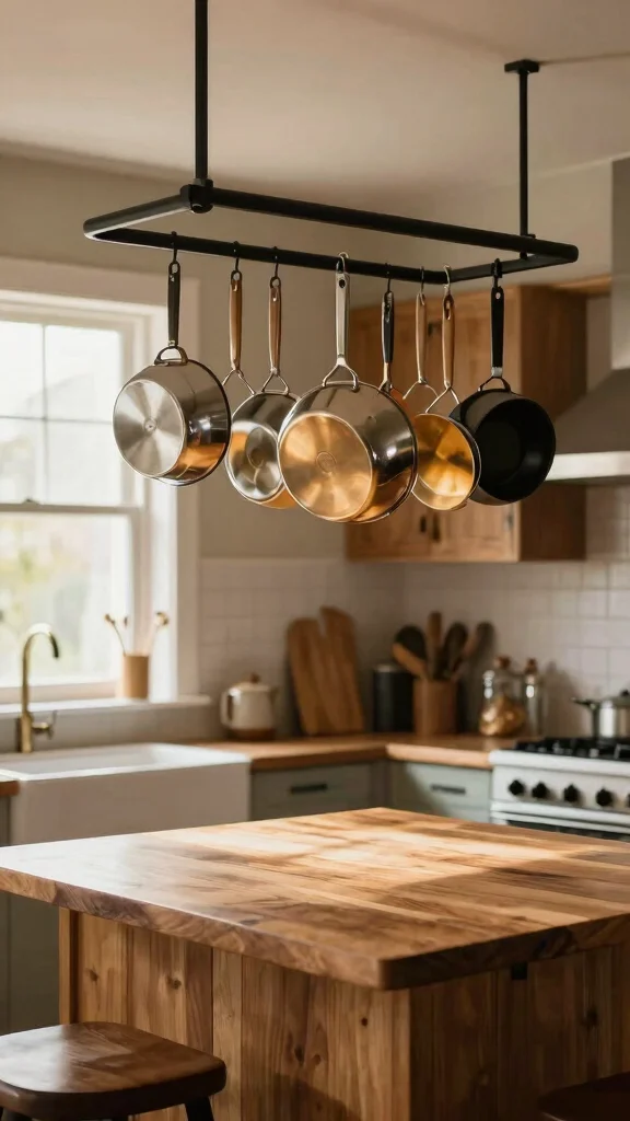 An overhead pot rack not only enhances your kitchen’s style but also elevates your cooking experience!
