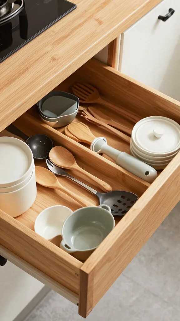 – Choose drawer organizers to keep utensils tidy.