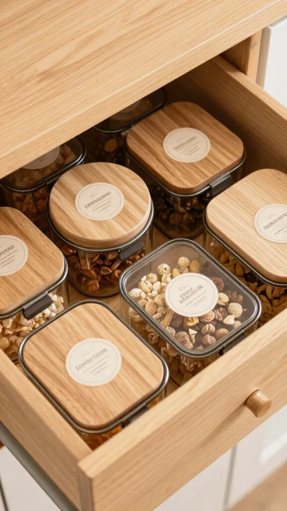 Labels improve visibility and make it easier to locate items at a glance. You can easily implement and customize labels to suit your kitchen’s aesthetic.