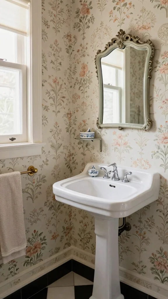 – Pair vintage floral wallpaper with white or cream fixtures