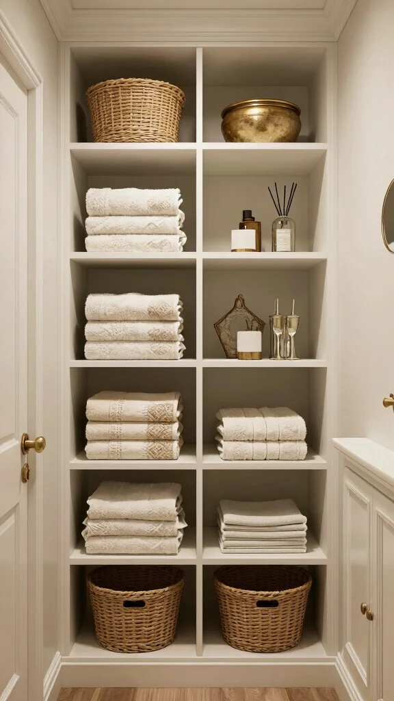 A clutter-free powder room is essential for maintaining an elegant atmosphere. Chic storage solutions can keep your space organized while enhancing its aesthetic appeal. Vintage-style baskets, cabinets, or decorative boxes can store essentials while adding character to the room.