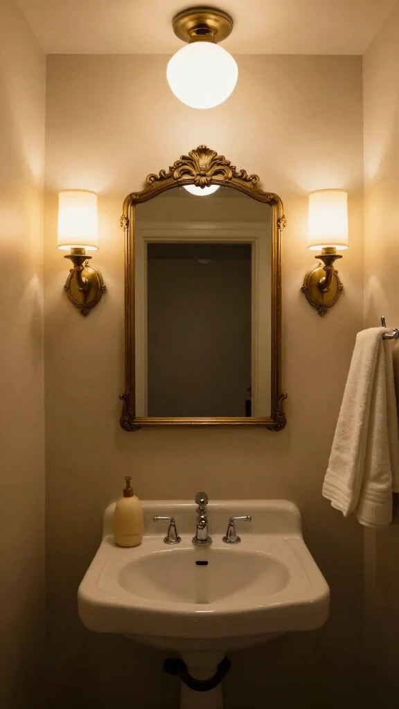 Elegant lighting fixtures can dramatically transform the mood of your powder room. Consider adding chandeliers or antique sconces that bring glamour and warmth to the space. These fixtures not only illuminate but also enhance the vintage theme, serving as decorative elements that enrich the overall design.