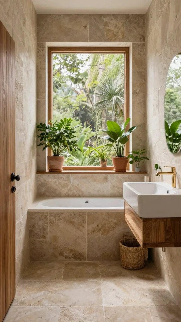 – Use natural stone tiles for an organic touch
