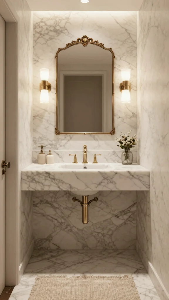 Incorporating marble accents elevates your powder room with a touch of luxury. Whether you opt for marble countertops or a stunning backsplash, this material makes a bold statement while maintaining elegance. Pairing marble with vintage-inspired fixtures creates a harmonious design that feels both sophisticated and inviting.