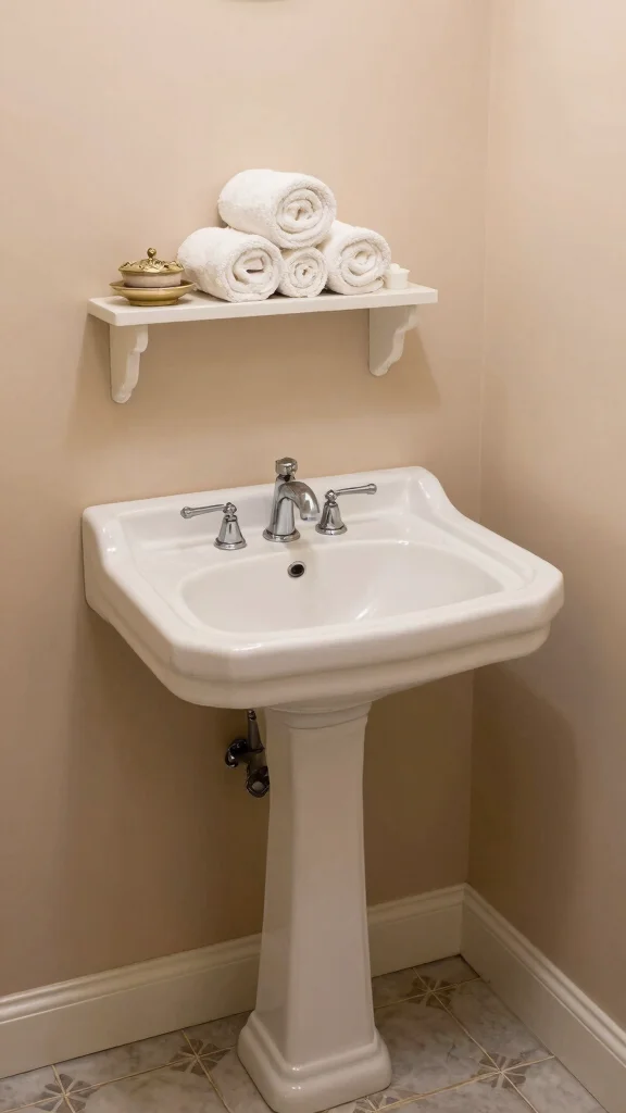 A classic pedestal sink serves as a stunning centerpiece in a vintage-inspired powder room. These sinks provide a timeless look that maximizes space while adding elegance. The slender base and graceful bowl design create an uncluttered atmosphere, enhancing your small bathroom’s charm.