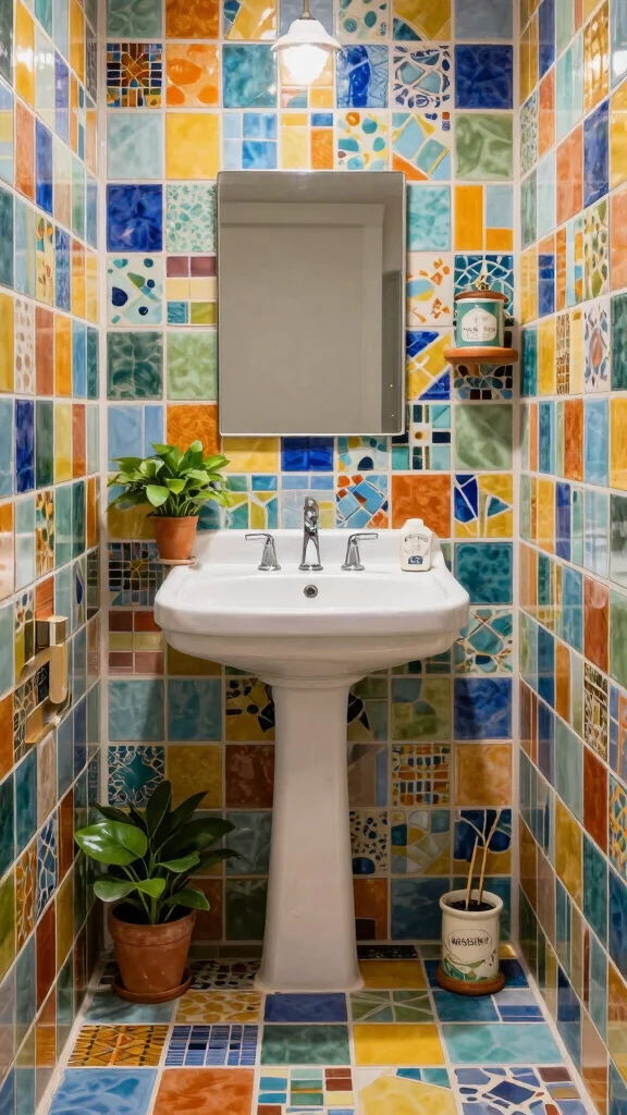 Colorful tiles can turn a basic powder room into a vibrant space. Use mosaic patterns or colorful ceramic tiles to create a unique visual appeal that reflects your personality. This approach adds life and energy, making your small bathroom decor stand out.
