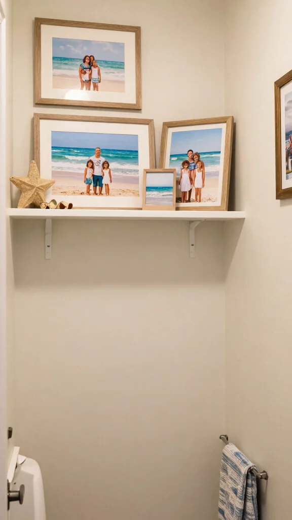 – Displaying framed photos from family beach trips in stylish frames.