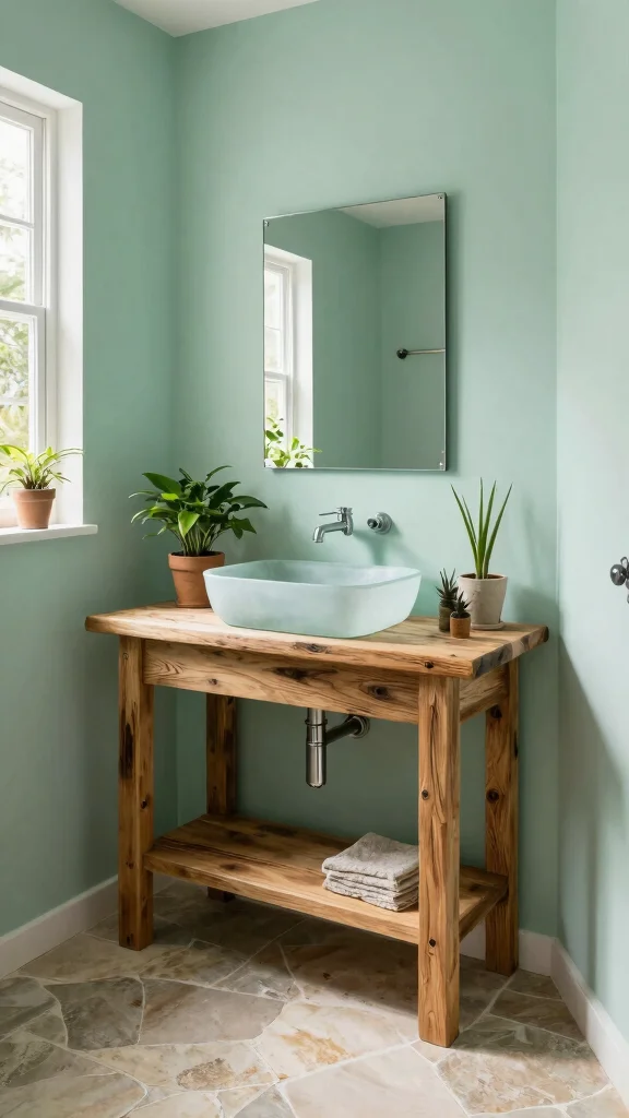 Opt for eco-friendly materials like reclaimed wood or bamboo for a stylish and sustainable powder room design.