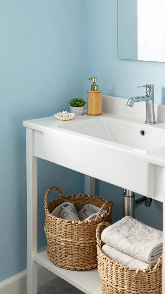 A tidy but chic layout is essential for a functional coastal powder room. A well-organized space maintains a serene ambiance while providing easy access to essentials. Use stylish storage solutions that enhance your design aesthetic, such as woven baskets or decorative boxes, to keep the space clutter-free.