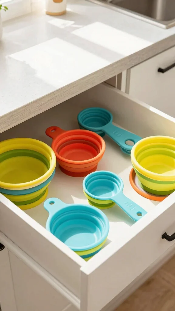 This method not only frees up drawer space but also creates a visually appealing kitchen workspace.