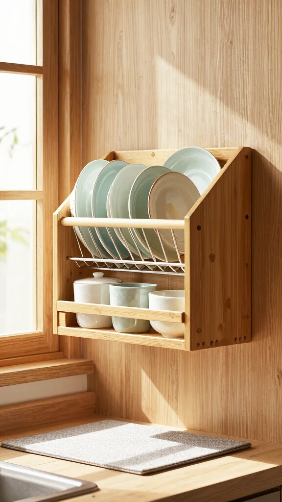 Fun fact: A wall-mounted dish rack can free up 30% of counter space in compact kitchens. Pair it with bamboo or recycled metal for eco-friendly storage. It dries faster, reduces towel waste, and keeps your creative kitchen storage ideas neatly organized.