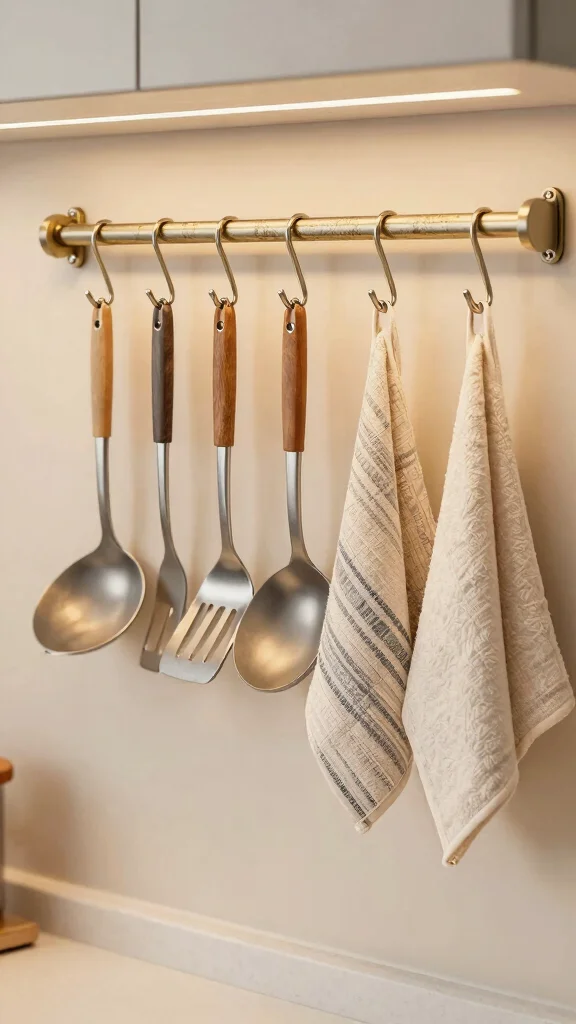 Incorporate S hooks for a practical storage solution that adds organization to your kitchen. By hanging utensils, dish towels, or even pots from a decorative rod or pegboard, you create a space-saving system that enhances accessibility and style. Look for stainless steel or eco-friendly materials to keep your kitchen looking chic and sustainable.