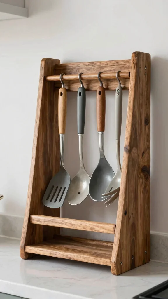 When selecting a wine rack, ensure it’s sturdy enough for your utensils and consider painting or staining it to match your kitchen style. Placing it on the counter or hanging it will enhance visibility and accessibility.