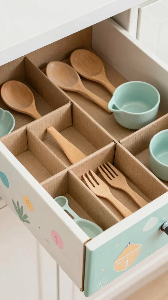 Transform your kitchen drawers with customized dividers made from recycled cardboard. This clever and budget-friendly solution keeps your utensils organized while minimizing waste. Simply cut the cardboard into strips to fit your drawer dimensions, creating designated sections for cutlery, measuring spoons, and more.