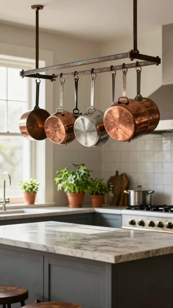 A hanging pot rack not only elevates your kitchen’s functionality but also adds a touch of industrial charm that brings life to your cooking space.