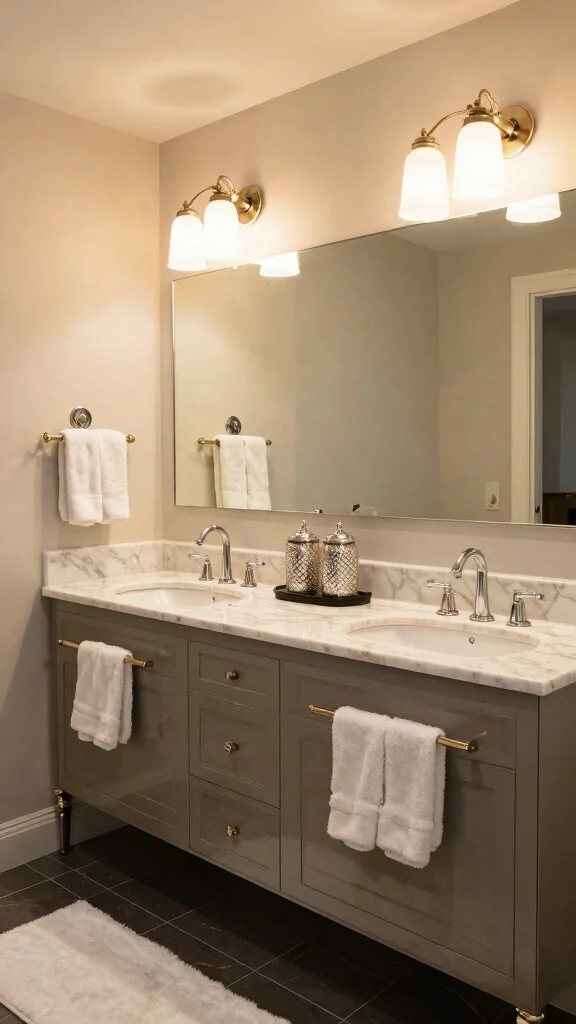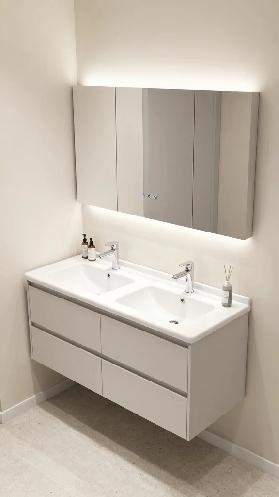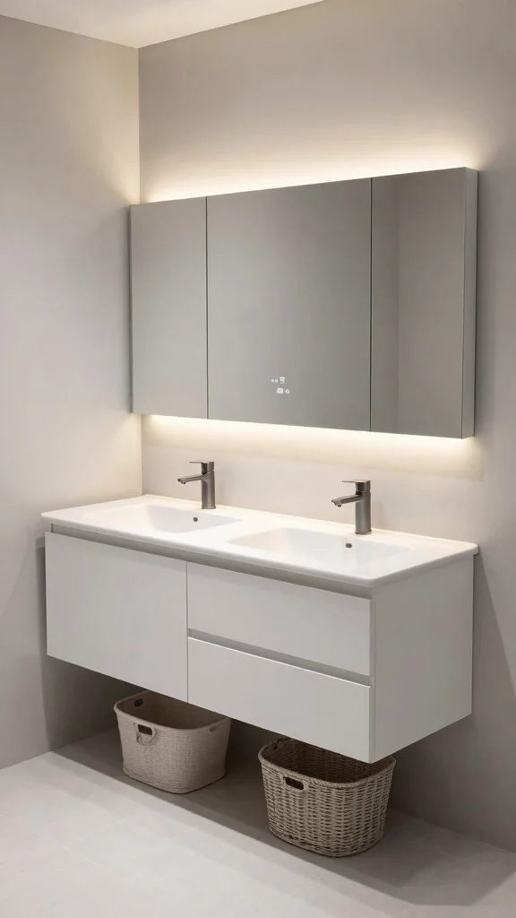 Incorporating integrated lighting into your double vanity can elevate the design dramatically. LED strips under the vanity or backlit mirrors create a warm, inviting ambiance that enhances the space. Dimmable lights offer flexibility for different moods, making your bathroom feel both stylish and functional.