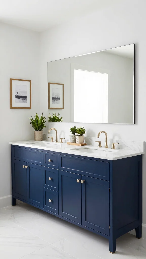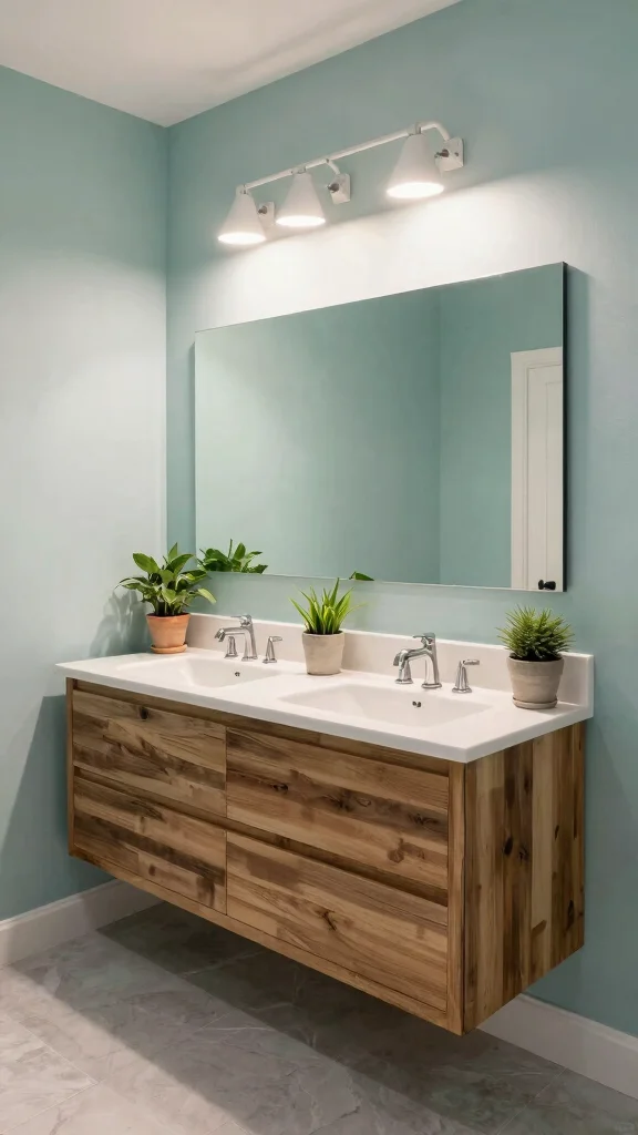 For eco-conscious homeowners, an eco-friendly double vanity can make a beautiful impact. Choose sustainable materials like bamboo or recycled wood, and opt for low-VOC paints to enhance your bathroom’s green appeal. Incorporate energy-efficient lighting and water-saving fixtures to complete the eco-friendly design.