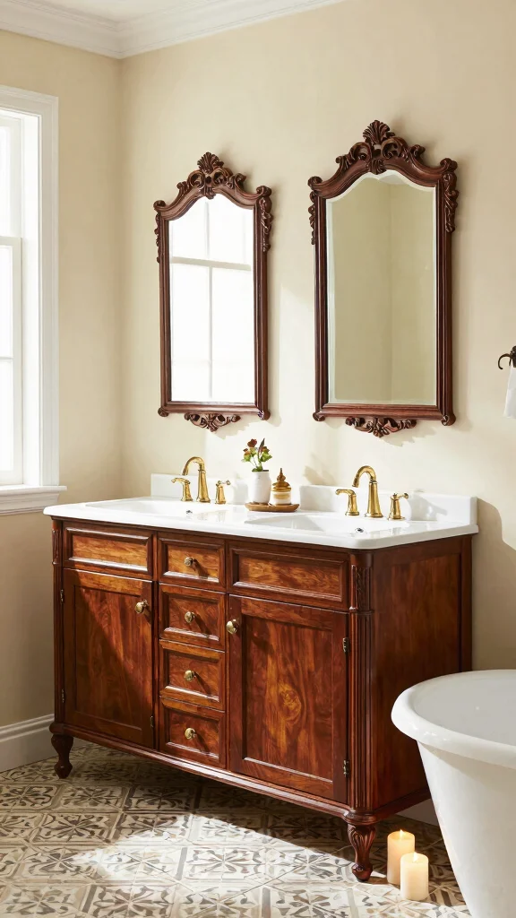 To amplify this style, consider vintage mirrors that align with your vanity’s aesthetic. Elegant decorative touches like fresh flowers or candles can add warmth and charm. Classic patterned tiles can tie the entire look together for a cohesive design.
