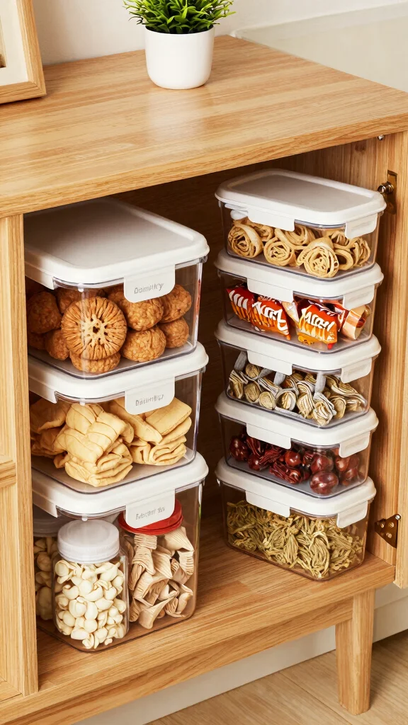 These organizers are perfect for snacks, spices, and baking supplies, allowing you to maintain visibility and minimize waste. Clear containers are particularly useful for tracking stock and ensuring you always know what you need.