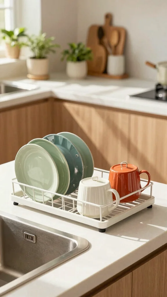 Instead of hiding your dish rack away, opt for a stylish dish rack that enhances your kitchen’s decor. Choose one that complements your theme—be it modern, traditional, or eclectic—to make it a standout feature.