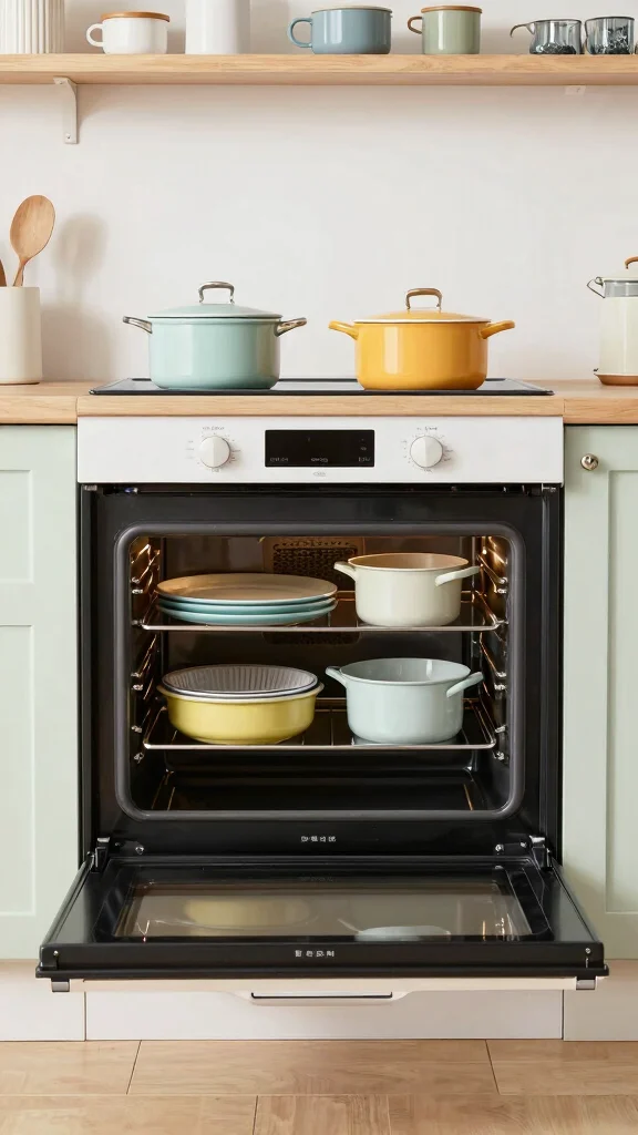 Your oven presents a unique opportunity for extra storage when not in use. It can be a practical spot for pots, pans, or infrequently used tools. Just remember to remove these items before cooking for safety.