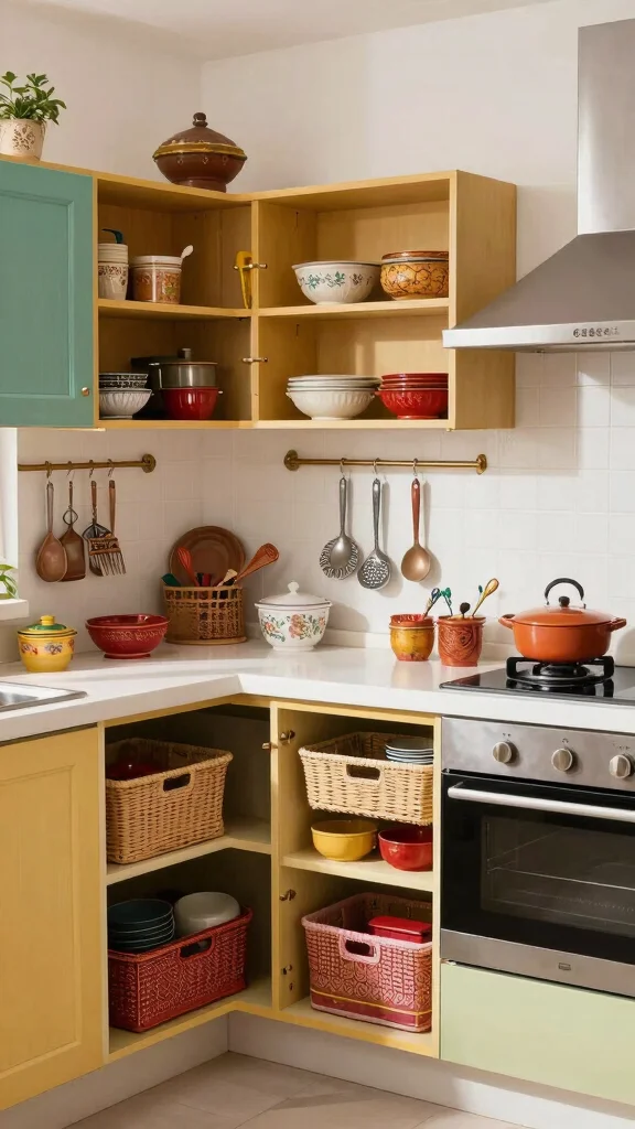 Corner cabinets often go underutilized, but with clever organization, they can be a treasure trove of storage. Incorporating lazy Susans or tiered racks maximizes accessibility, making it easy to reach bulky items like mixing bowls and large pots. This approach transforms a tricky space into an efficient storage solution.
