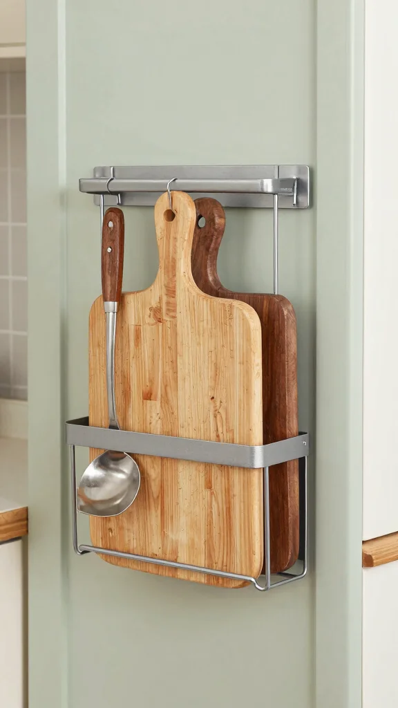 Over-the-door organizers are a fantastic way to utilize often-overlooked spaces in your kitchen. Ideal for storing cutting boards, pot lids, or towels, they take advantage of vertical space to keep your kitchen clutter-free. This practical solution ensures easy access to frequently used items while enhancing organization.