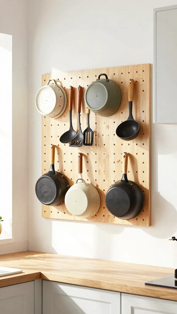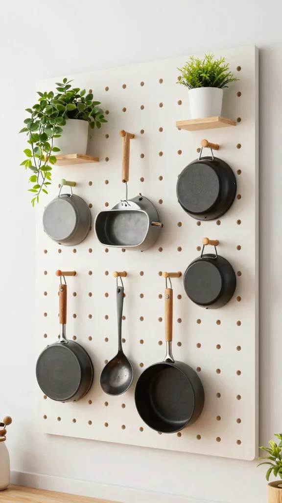 Pegboards offer incredible versatility, turning your kitchen into an organized haven. By installing a pegboard on a wall, you can hang utensils, pots, or even small plants, keeping your gear within reach while showcasing it as decor. This solution enhances both functionality and style in your kitchen space.